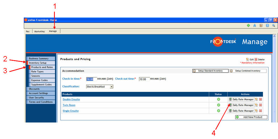 Daily Rate Manager" button adjacent to the Product you want to amend the prices for