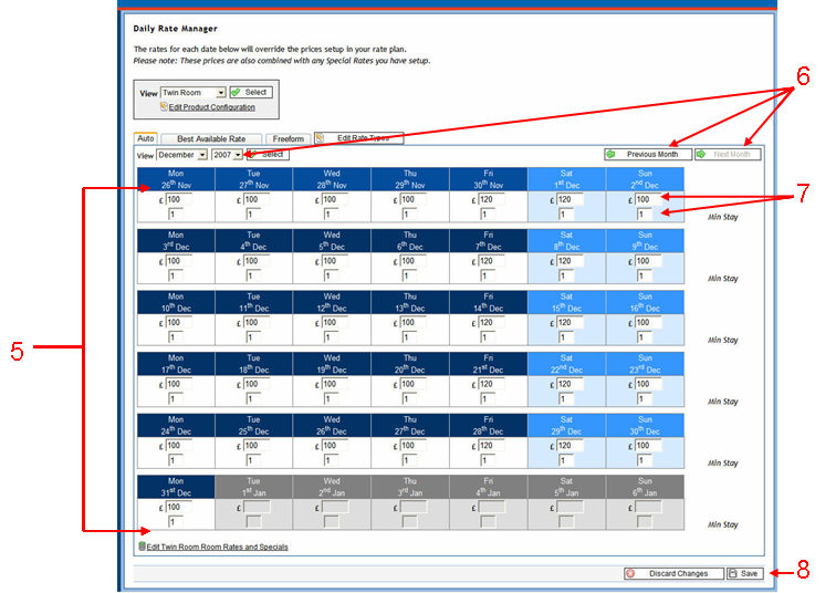 Changing the Rate Plans once they have been set up is very simple to do. Any changes that have been made to the Rate Plans by using the Daily Rate Manager will be lost.